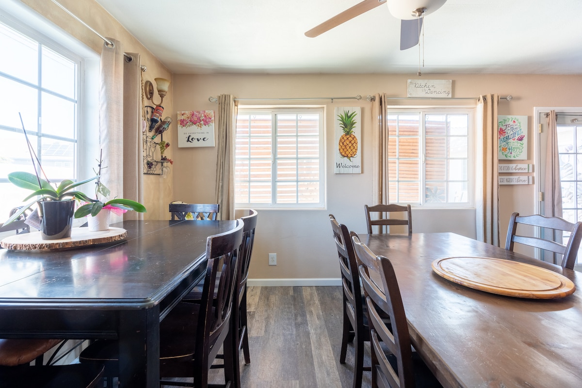 Death Valley Millî Parkı yakınında (kavşağa 25 dk, bilgi merkezine 1 saat) yakın zamanda yenilenen evimizde büyük güzel gökyüzünün tadını çıkarın. Eklentili tam banyolu iki ana yatak odası, tam donanımlı mutfak, büyük granit ada ve konforlu oturma odası, çamaşır makinesi ve kurutma makinesi bulunan evimiz kaçamaklar için mükemmeldir. Arka bahçe, veranda ve Ölüm Vadisi'ndeki sıradağların manzarası da dahil olmak üzere keyif alabileceğiniz geniş açık alanlar var. Yakındaki turistik yerler arasında Ash Meadows vahşi yaşam sığınağı ve daha fazlası yer alıyor.