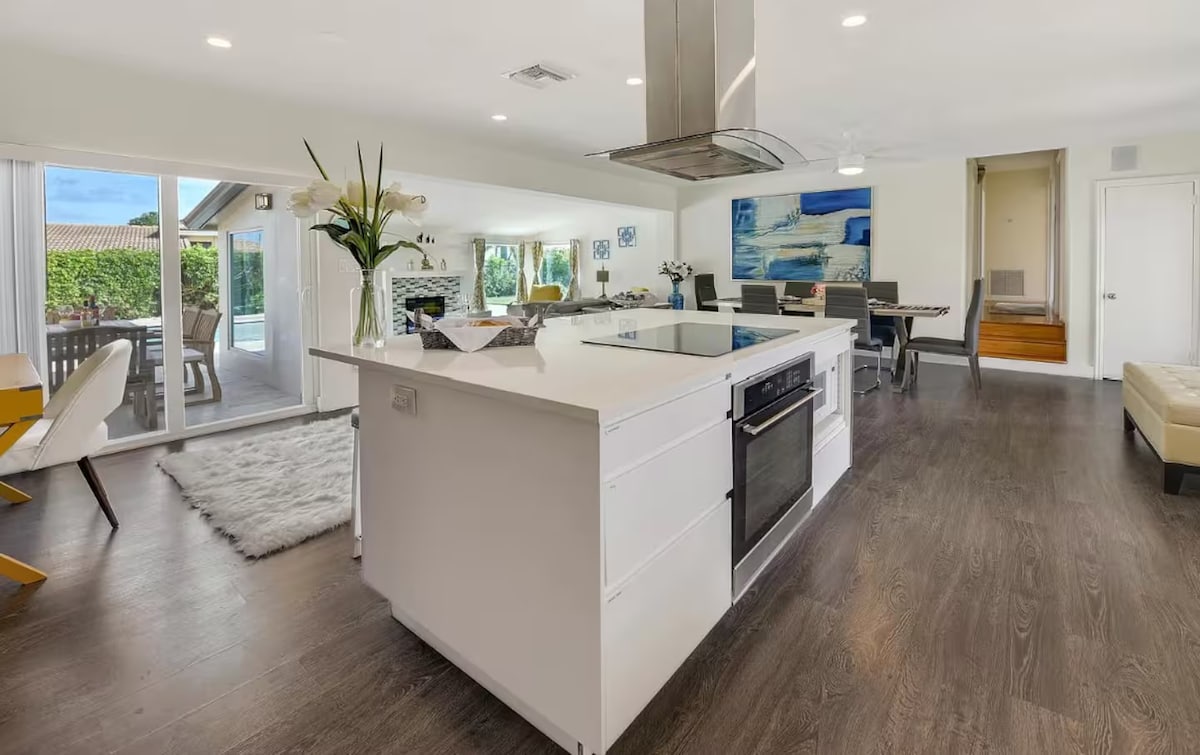 Deerfield Beach'e sadece 10 dakikalık mesafede, kusursuz bir konaklama için akıllı özelliklerle yeni yenilenmiş şık, boho-lüks inzivanızda hoş geldiniz. Yıl boyunca ısıtılan ve soğutulan, yemyeşil tropikal peyzajla çevrili özel tuzlu su havuzunuzda Florida güneşinin tadını çıkarın. Boca Raton, Fort Lauderdale veya West Palm Beach'i keşfedin ya da kısa bir yürüyüş mesafesindeki popüler butikler, samimi kafeler ve en yüksek puanlı restoranlarla yerel bir deneyim yaşayın. Güney Florida'daki mükemmel kaçamağınız burada başlıyor.