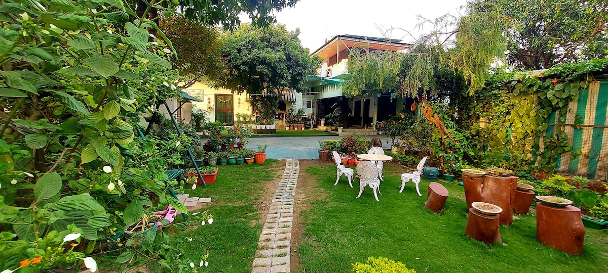 Very close to Welham Girls & Doon International School. A 2bhk independent unit on the 1st floor with a large veranda, living area, kitchen & bathroom. Guests have access to the common garden areas, including a hopscotch area and pingpong table. Sample our home-grown organic vegetables and home cooked meals for a nominal fee. Experience composting, electric vehicles, bird watching, solar energy, grey water and rainwater harvesting. Special discounts for students & researchers on longer stays.