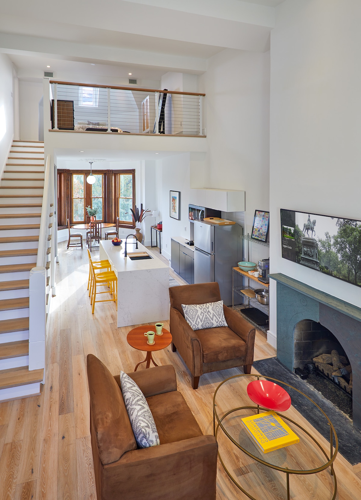 Misafirler Airbnb'mizi modern yaşam ve tarihi cazibenin ideal bir dengesi olarak tanımlıyor. Bu olağanüstü, aydınlık, havadar çatı katı dairesi, ikonik bir Logan Circle Victorian olan özel evimizin en üst 2 katıdır. Logan Circle Park'ın ağaç tepelerine ve komşu tarihi evlere bakıyor. Kendi girişi ile tamamen özel olan daireye asansörle erişilir. Ulusal başkentin göbeğindeyiz, şehrin sunduğu her şeye yürüme, bisiklet sürme veya toplu taşıma mesafesindeyiz.
