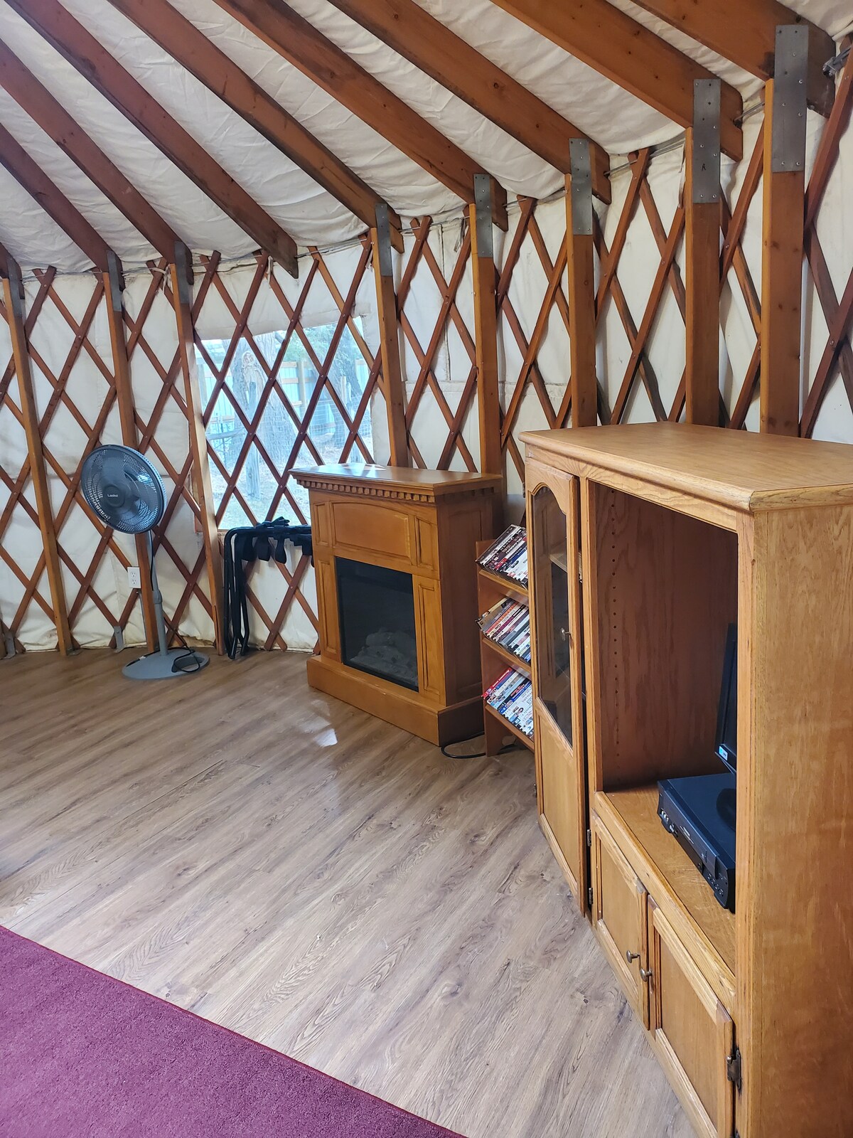 Kırsal kesimdeki sıcak, rahat ve huzurlu dinginliğe katılın. Bu küçük "Yurtie" tek katlı bir odadır! Isıtma/soğutma için bölünmüş bir ünitesi vardır. Gerekirse çitli bir çimenliğimiz ve bir meramız var. Yurt yaşamı inanılmazdır; gökyüzünü izlemek için bir kubbe. Ranza - altta çift kişilik, üstte ikiz. Mutfak lavabosu için sıcak musluk suyu ve tam mutfak olanakları sizi bekliyor. Veranda harika gün batımı manzarasına sahiptir ve dış mekan yemek alanına katkıda bulunur. Tuvalet, lavabo ve duşlu yeni bir ortak duş evimiz var!