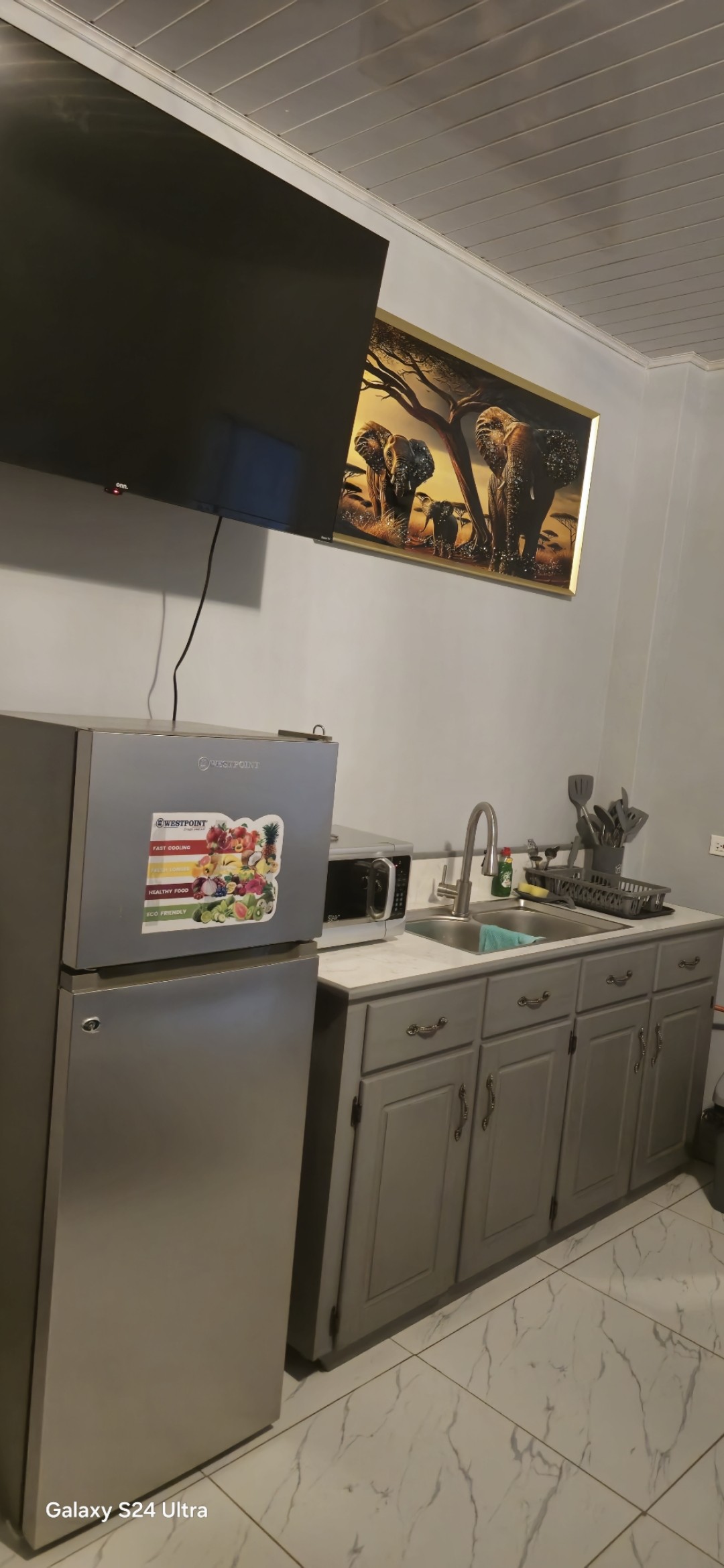 This one bedroom apartment is suitable for 3 guest,Relax with family or friends at this peaceful apartment and enjoy the quiet life.There is a $10 additional fee after the second guess .apartment is located just 7mins away from Ogle airport and 45mins away from Chiddi Jagan international Airport. 2mins away from the famous Movie town, 4mins away from Gift land mall, 6mis away from UG and 15 minutes away from the city.