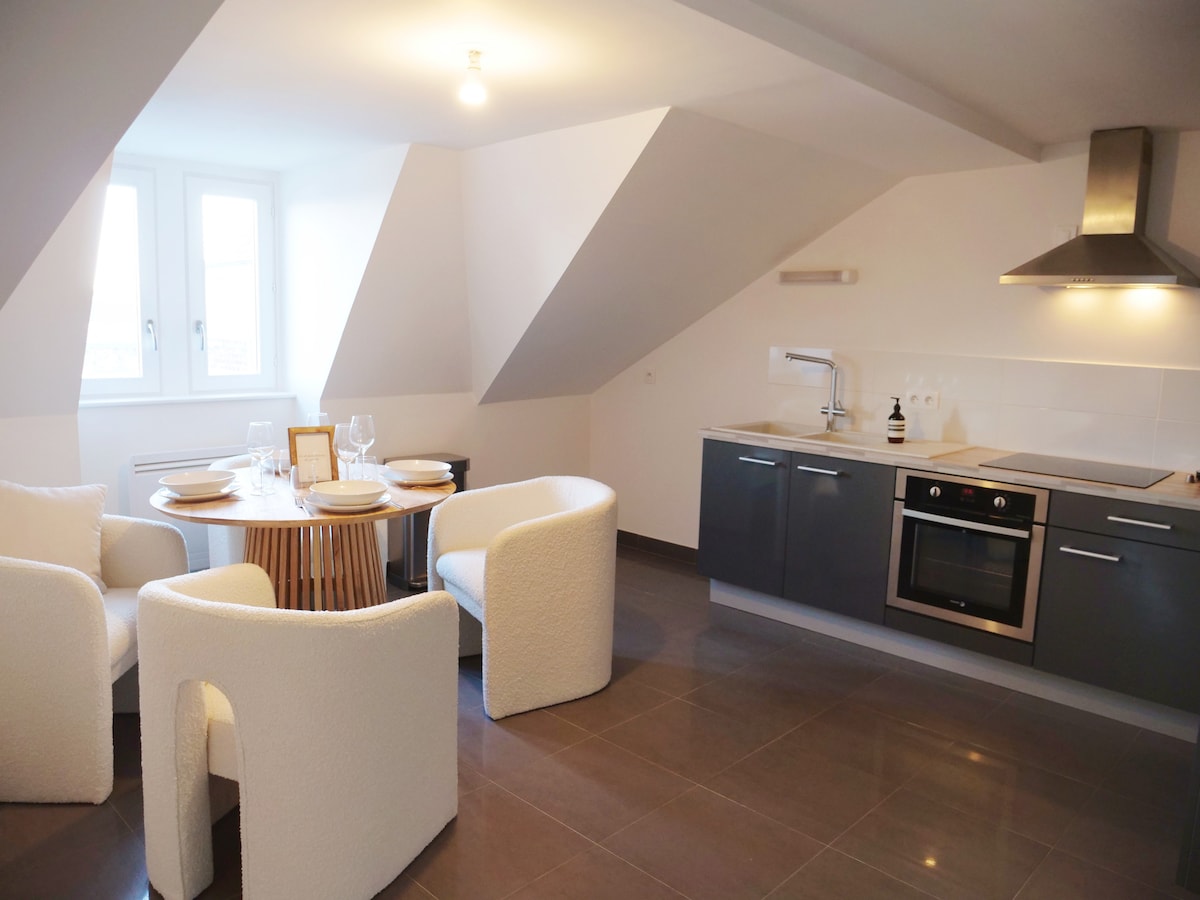 Şehrin göbeğinde, asansörlü çok yüksek bir Haussmann binasında bulunan Noel pazarınağı ve şehir merkezine 5 dakika yürüme mesafesinde, muhteşem koza 75 m2'lik tam donanımlı yeni bir dublekstir. Sıcak bir dekor ve bir ışık banyosunda hindistan cevizi, konaklamanızı uygun olduğu kadar keyifli hale getirmek için her şey düşünüldü. Çantalarınızı koymak için mükemmel yeri bulacaksınız.
