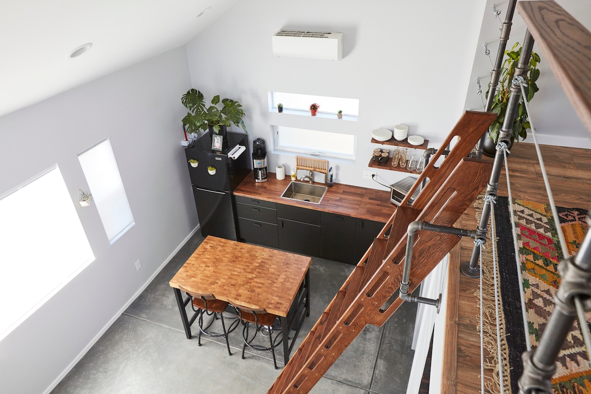 Bu yepyeni unutulmaz yer sıradan olmanın çok ötesinde. Küçük ev hareketinin etkisiyle sanatçılar tarafından yaratılan bir Flowershop mülkünde yer alıyor. Uyku çatı katı gibi küçük bir evin özelliklerini, dönüştürülmüş sanatçı stüdyosunun ferah hissiyle birleştirdik; örneğin daha yüksek tavanlar, geniş banyo. Gizlilik ve sessizlik için mülkün arkasına gizlenmiş, ancak birçok olanağa yakın olan I70, I25 ve Oldtown Arvada, burayı çok yönlü bir konaklama yeri haline getiriyor. Red Rocks'a 15 dakika.