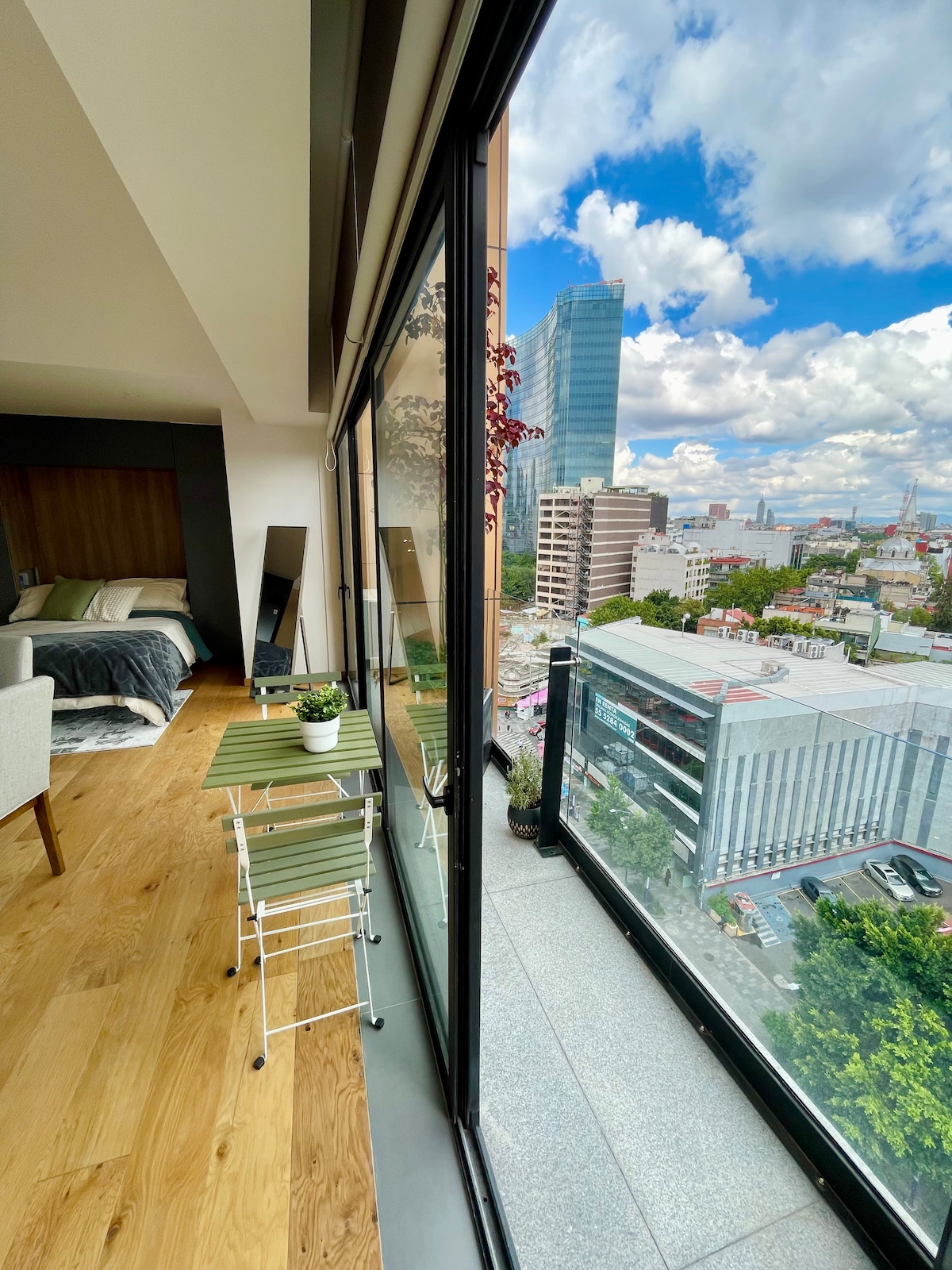 Perfect for experiencing the vibrancy of one of Mexico City’s most coveted neighborhoods, Colonia Roma –steps away from the coolest local hotspots including restaurants, bars, boutiques, shopping and cultural landmarks. This stylish one-bedroom apartment offers luxury and comfort with high ceilings, ample natural light, and modern furnishings. It features an open living area, a private terrace, and a tranquil bedroom with a king-size bed and workspace.