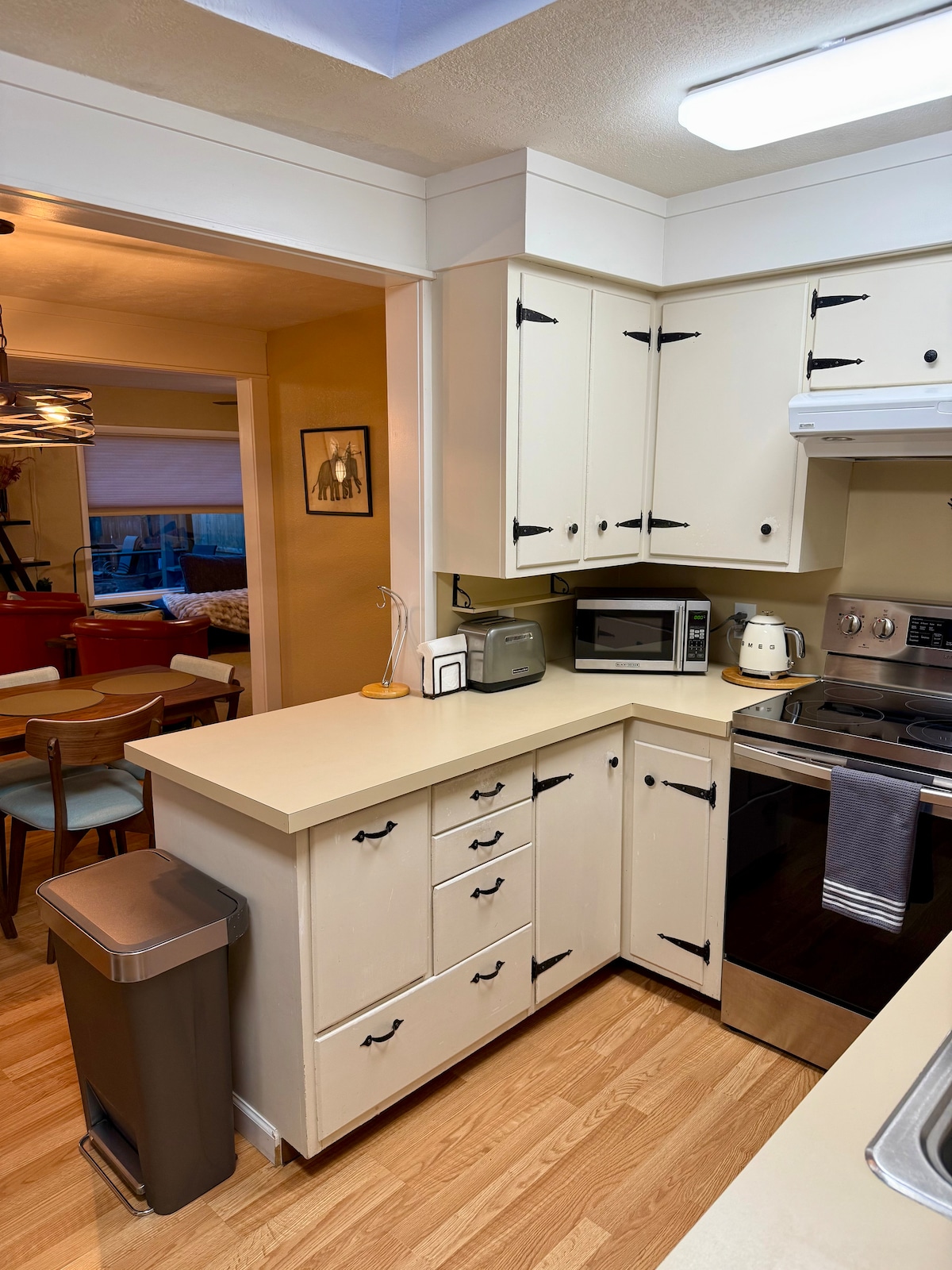 1950 'lerin bu sevimli kulübesi Midtown Bend'in göbeğinde, yerel kahve dükkanlarına, restoranlara, parklara ve Pilot Butte Eyalet Parkı'na yürüme mesafesinde ve Bend şehir merkezine bir milden az mesafede yer alıyor. Işık alan iki yatak odasının her ikisinde de büyük bir arka güverte ve çitle çevrili, özel bir arka bahçeye açılan çift kişilik Fransız kapısı vardır. Rahat bir oturma odası ve mutfakta yemek bu evi küçük bir aile veya birkaç arkadaş için mükemmel bir yer haline getiriyor. Jakuzili sakin çitle çevrili arka bahçe alanı.