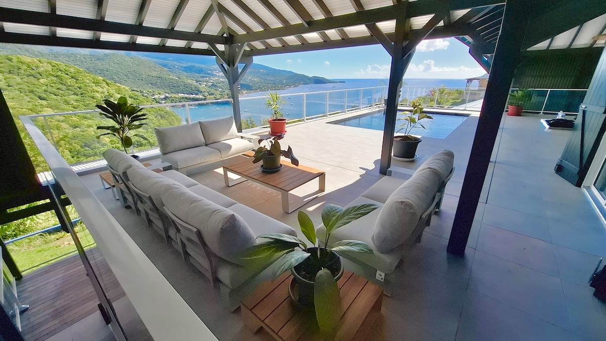 Karayip Denizi'ne panoramik manzaralı, havuzlu, özel giriş ve otoparklı yeni ve büyüleyici villa. Leroux ve Petite-Anse plajlarına yakın, doğrudan koya erişimi olan, kapalı bir alanda ön cephe. İki büyük klimalı oda (2 ila 4 misafir), kral yatak, sineklik, giyinme odası. Geniş duş, ayrı tuvalet ve çamaşır odası. Yaşam alanı, elektrikli jaluziler, vantilatörler, TV, wifi ve tam donanımlı açık mutfak, plancha ile bir teras-oturma odası içerir.