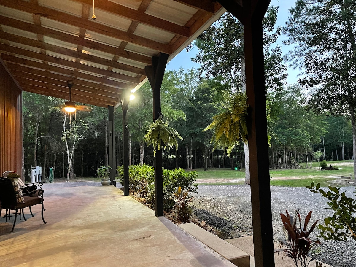 Silsbee şehir merkezine dakikalar mesafesinde, benzersiz ve rahat bu barndominium stüdyoda rahatlayın. Ana evden 100 metre uzaklıkta. Verandada sallanırken ve sabah bir fincan kahvenin (veya gece şarabın) tadını çıkarırken dinlenin:) Big Thicket Ulusal Koruma Alanı'nda yürüyüşe çıkın veya ünlü Village Creek'te kano veya kayağa gidin (bize nasıl olduğunu sorun!) Silsbee Ice House Müzesi'nde bölge tarihini de öğrenebilirsiniz. Yürüyüş parkurlarını görmek için resimlerdeki mülk haritamıza göz atın.