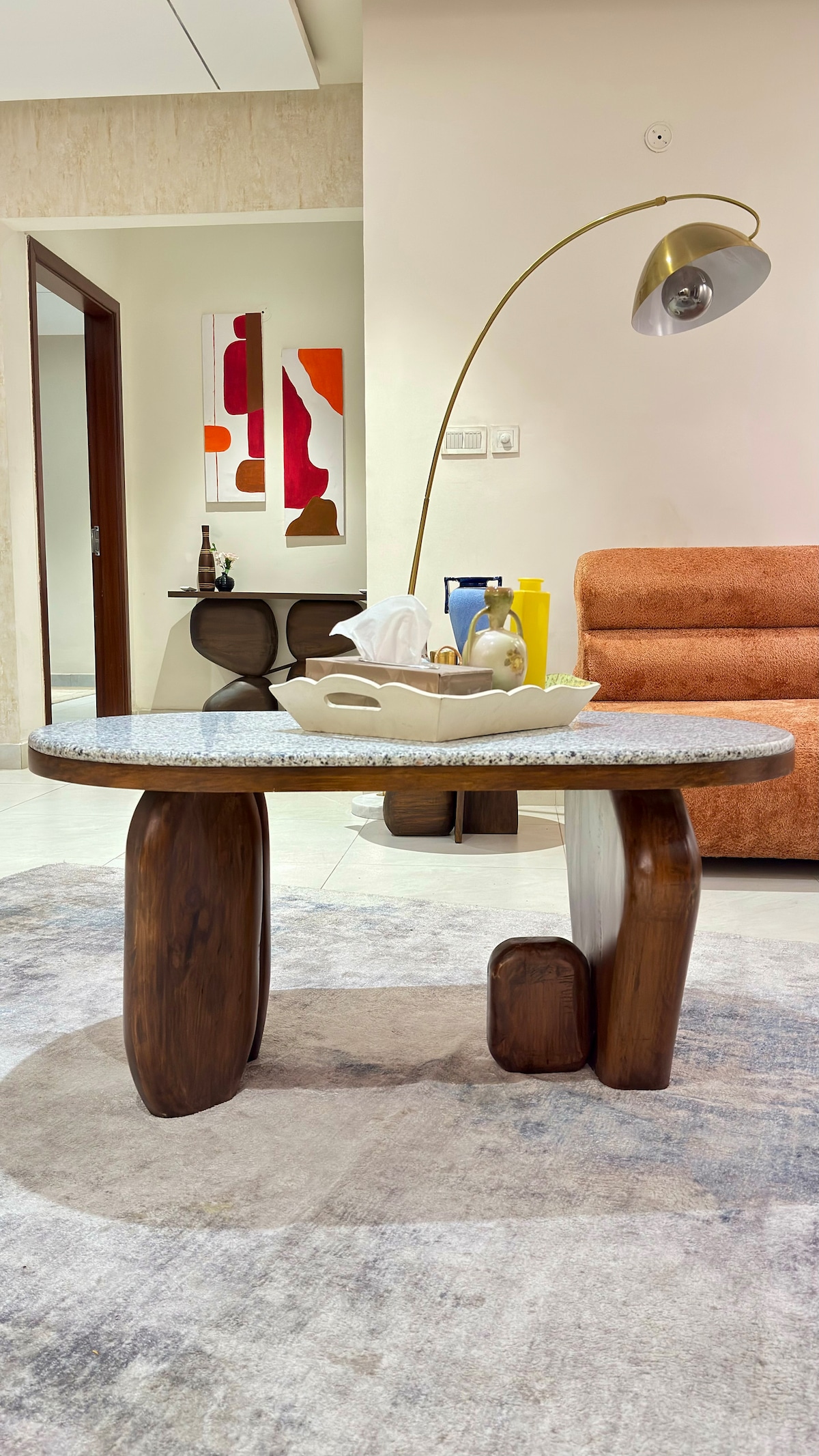 Heykelsi organik modernizmi galeriden ilham alan minimalizmle harmanlayan bu 2BHK daire, sakin ama görsel olarak çarpıcı bir yaşam deneyimi yaratmak için akıcı formları, toprak dokuları ve mimari kıvrımları kutluyor. ✨ USP: Lahor'un ilk heykelsi organik modern tasarımcı alanlarından biri, kavisli duvarlar, belirgin kavis odaklı düzen, iddialı mobilyalar, sıcak toprak tonları ve sanatsal dokunuşlar ruhani, dingin ve kusursuz lüks hissi yaratmak için hazırlanmıştır. Gulberg'in tam merkezinde.