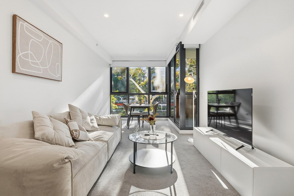 Bu şık, tamamen mobilyalı dairede Canberra'nın kalbinde kalın. Aydınlık bir yaşam alanının, hızlı kablosuz internet bağlantısının, akıllı TV'nin ve tam donanımlı bir mutfağın keyfini çıkarın. Her iki yatak odası da dinlendirici bir konaklama için pelüş yatak takımları sunar. Şehir manzarasına sahip özel balkonda dinlenin. En iyi turistik yerlere, kafelere ve mağazalara yürüme mesafesinde, 2 güvenli otopark mevcuttur. - Ön ve arkada 2 park yeri. - Anahtar teslimi ayrıdır, arabayla 5 dakika veya yürüyerek 11 dakika mesafededir. 7 gün 24 saat.