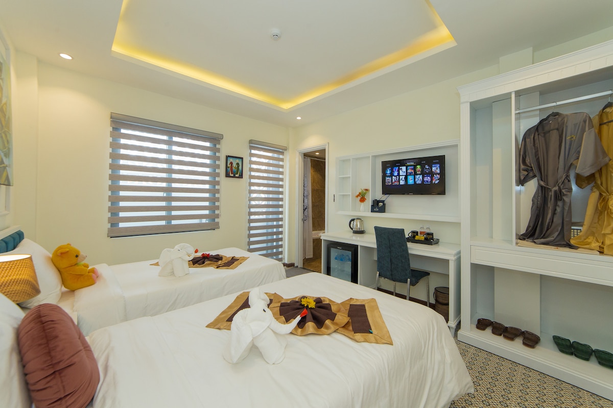 6 misafire kadar gruplar veya aileler için mükemmel olan bağlantılı odamızda üstün konfor ve rahatlığı🌟🌟🌟 deneyimleyin. Geniş alan ve modern olanaklarla tasarlanan oda, herkes için dinlendirici ve keyifli bir konaklama sağlar. Hoi An Antik Kentinin merkezine sadece 1 km ve güzel An Bang Plajıjıjı'na 3 km uzaklıktaki tesisimiz, canlı şehri keşfetmek ve deniz kenarında dinlenmek arasında mükemmel bir denge sunuyor. Sizi Hoi An'da unutulmaz bir şekilde ağırlamayı sabırsızlıkla bekliyoruz! ♥️♥️