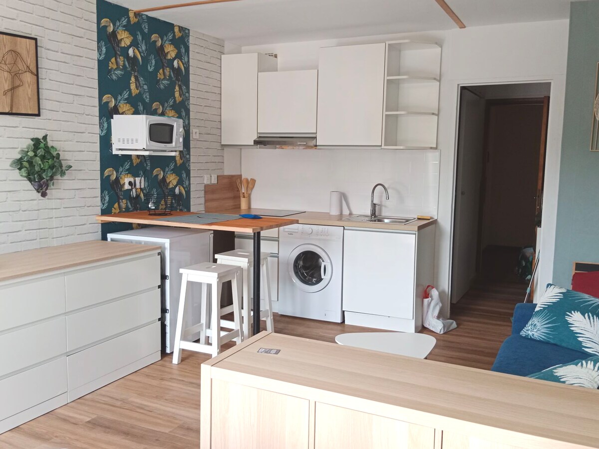 Şehir merkezinde, sakin bir semtte bir rezidans Zemin katta bulunan 37 m2'lik bu T1, küçük bir özel bahçeye bakan 25 m2'lik kapalı bir terasa sahiptir. Kışın güneşli, yazın gölgeli teras. Karşısında bina yok. Klimalı. Merkeze, otobüs durağına, otobüs durağına (kaplıcalara gitme imkanı) 5 dakika yürüme mesafesinde bulunmaktadır. Kapalı garaj (kutu tipi). Çarşaf ve havlu dahildir. Kaplıca ziyaretçileri ve uzun süreli konaklamalar için tercih edilen fiyat (bana mesaj gönderin).