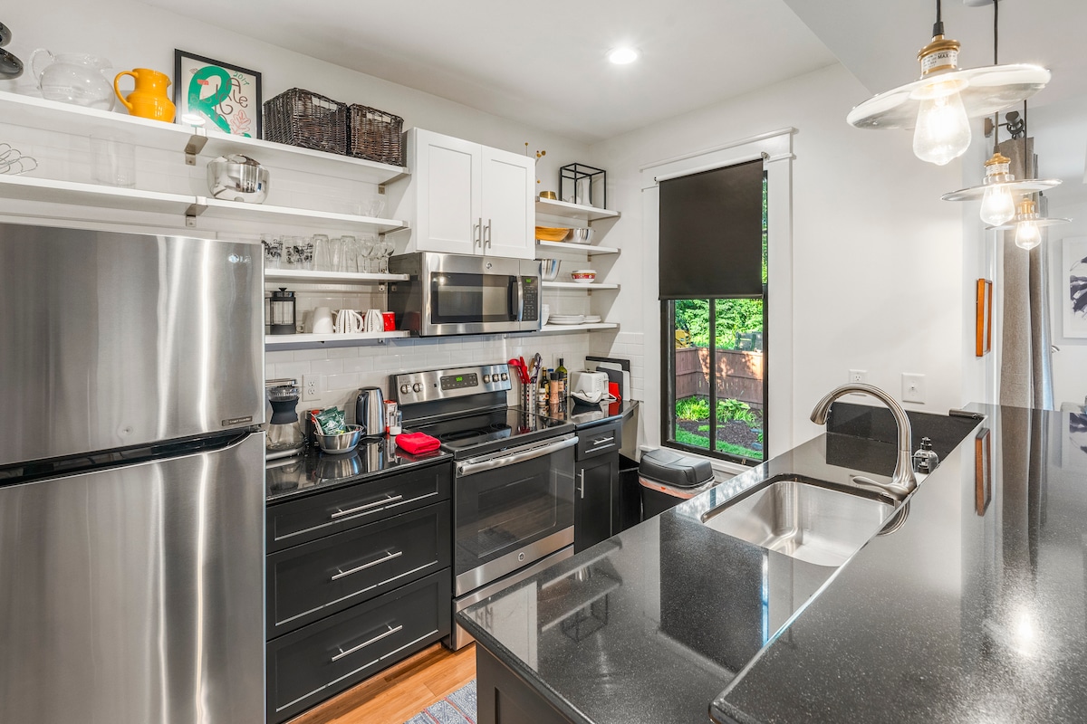 Bu casita küçük olabilir ama büyük bir kişiliği var. Bu küçük hazine Raleigh'nin göbeğinde yaşıyor ve bir sonraki şehir maceranızı desteklemek için bekliyor. Bu kiralık yerin, garaj yolundan erişilebilen sahibinin arka bahçesinde olduğunu lütfen unutmayın. Konaklamanızı optimize edebilmeniz için burayı inşa ettik. Tam donanımlı mutfakta yemek pişirin. Verandada dinlenin ve iç/dış mekandaki barda yemek yiyin. Kullanımı kolay Murphy yatağımızla ana yaşam veya uyku alanını özelleştirin. Yakında görüşmek üzere!
