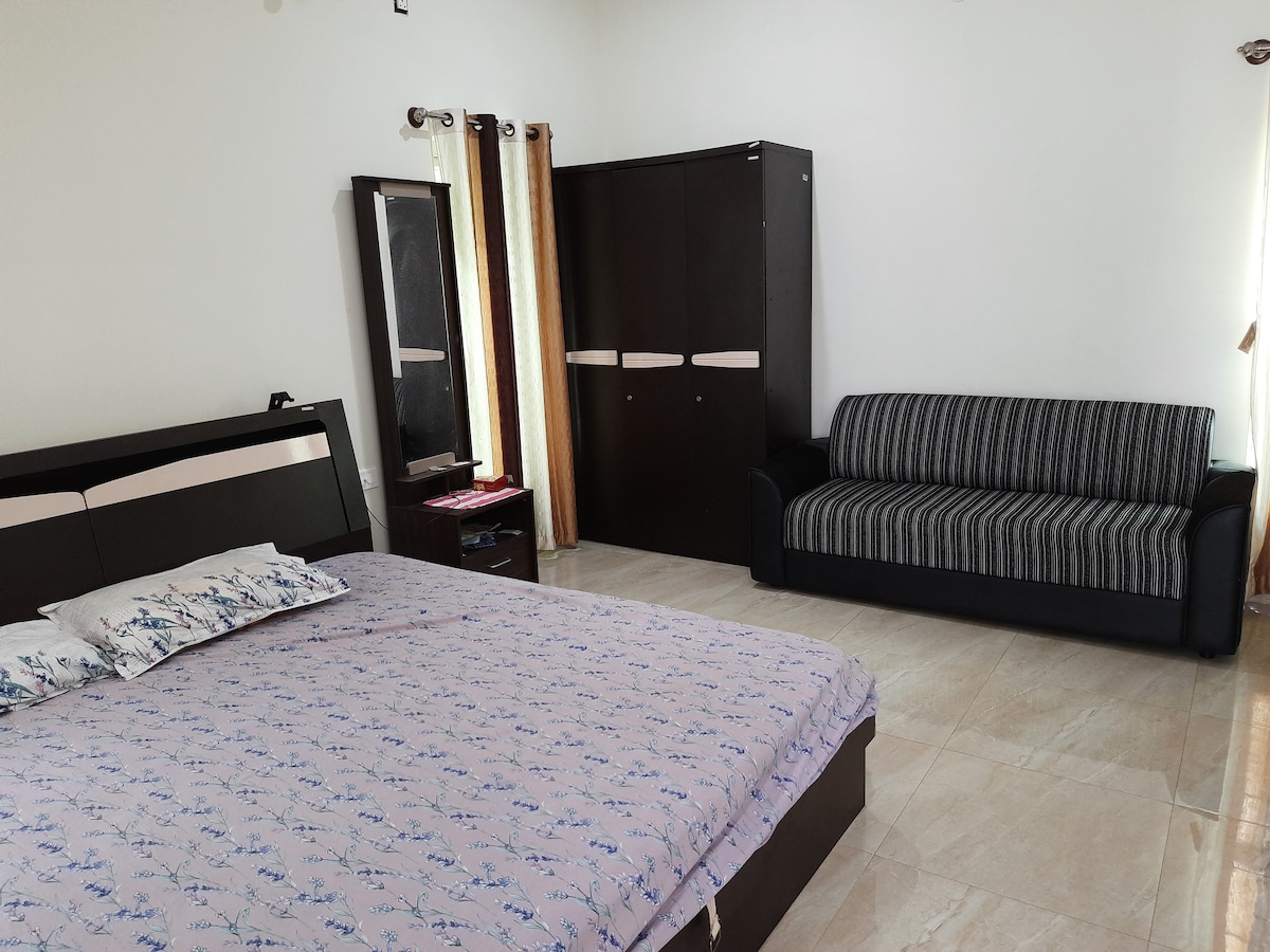 Bu huzurlu konaklama yerinde aileniz ve arkadaşlarınızla birlikte dinlenin. Size en iyi dileklerimle ev sahipliği yapmak için yeni inşa edilmiş bir ev. Şehrin tüm telaşı sesleriyle burada yaşayın! Sessizliğin ve güneş ışığının tadını çıkarın ve uçan uçaklara ve açık gökyüzüne dikkat edin. Bol miktarda açık alana ve açık terasa sahip 1 bhk bağımsız bir ev. Havaalanına ve keşfedilecek birçok turistik noktaya yakındır. ClubCabana sadece 5 dakika uzaklıkta, Adiyogi Shiva Heykeli,Nandi tepeleri ve keşfedilecek daha birçok yer alıyor.
