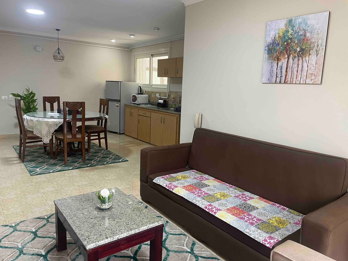- Bu eşsiz yerin kendine has bir tarzı vardır/Ultra modernize otel olanakları sunan möbleli daire. - Yasa dışı olarak karışık cinsiyetlere izin verilmez. - Geleneksel evlilik çifti kabul edilir. - Binanın girişinde tekerlekli sandalye ve bagaj için rampa. - Seoudi Süpermarket; Seoudi Süpermarket'ten (dairenin binasının yanında) her türlü birinci sınıf kaliteli peynir (yumuşak ve sert peynir). - Çamaşırhane, kuaför, berber dükkanı, cami , chirch . - BeIN 'Ultimate' Paketi/Shahid VIP SSC