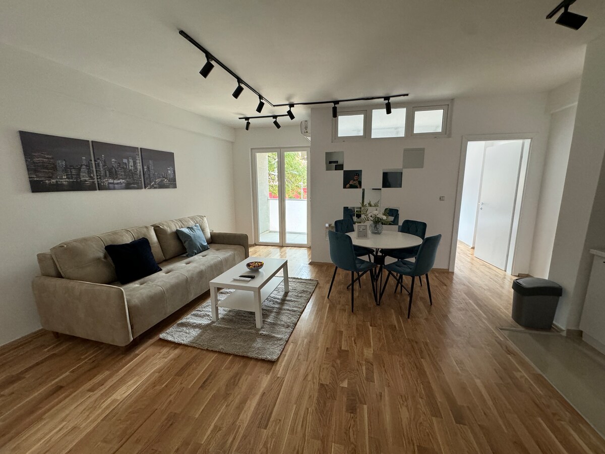 Merkezî bir konumda bulunan bu yerde şık bir deneyimin tadını çıkarın. Bu, şehir parkına (stadyum) ve ana meydana yürüyerek 5 dakika mesafede YEPYENİ 60 m2'lik bir dairedir. Mümkün olan en iyi konum, birçok bar ve restorana sahip Debar Maalo'nun güzel sokaklarına çok yakın. Dairede queen boy yataklı 1 yatak odası ve rahat çekyatlı + çekyatlı bir oturma odası bulunmaktadır. Ayrıca her iki odada da biri Vodno Dağı'na bakan 2 balkon. Kahve içmek veya öğle yemeği yemek için kullanabilirsiniz.