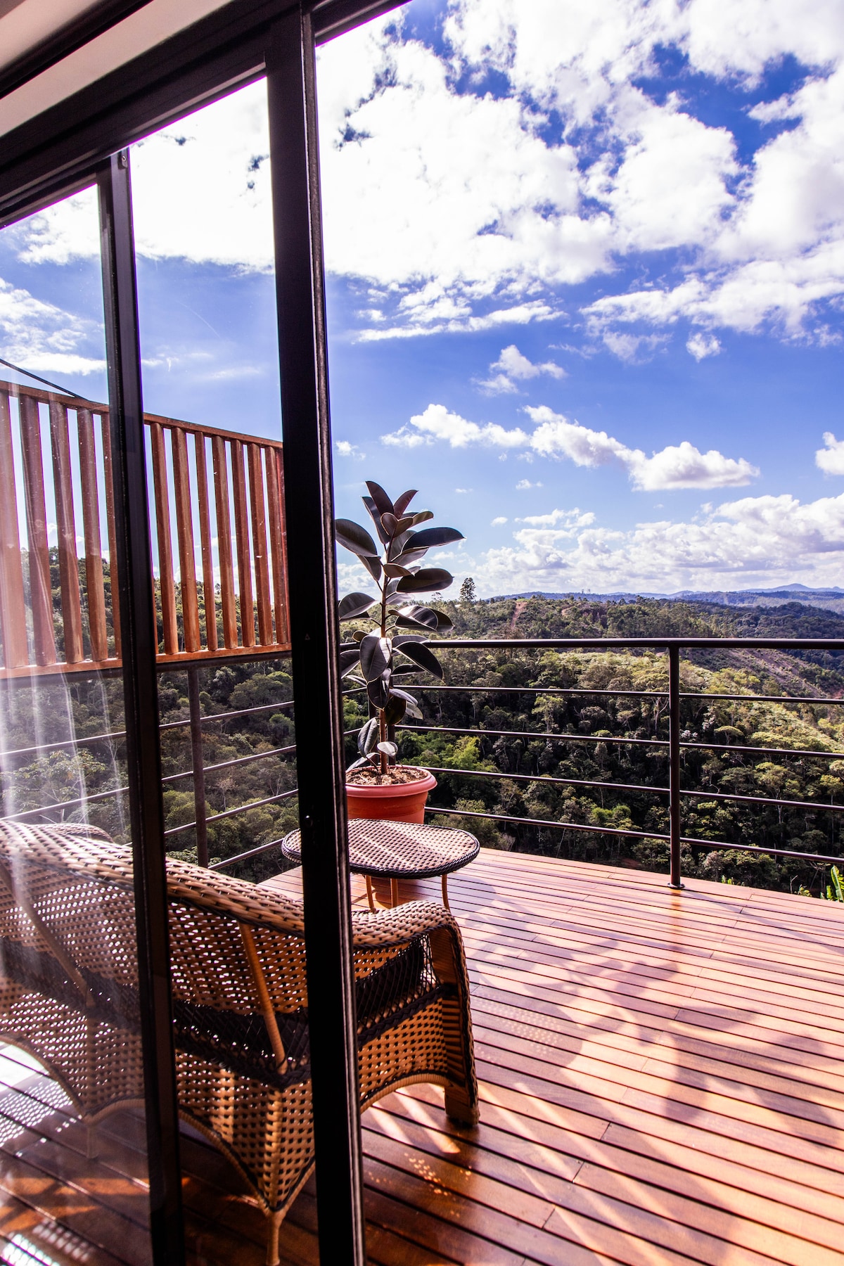 Casa_Relva 3Q, 2 süit, güverte ve orman manzarası.