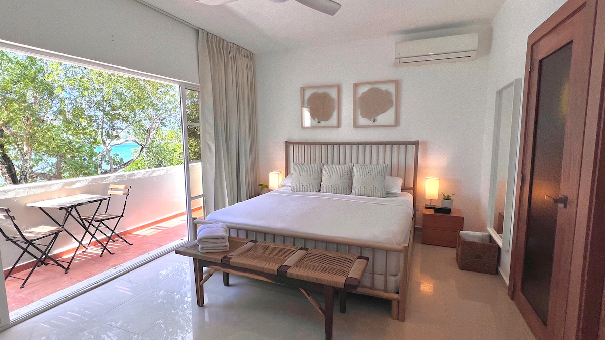 Playa Popy PLAJINA 750 ft/250 m. 3 bungalovdan oluşan küçük bir oda - kahvaltıda tropikal tarzda Cabaña. Doğal yüzme havuzuna sahip yemyeşil bir bahçeye bakan açık bir verandaya sahiptir. King boy yatak, günlük oda servisi, tuvalet malzemeleri, tavan vantilatörü ve klima bulunan tam banyo. Güvenli park alanı. Kahvaltı mevcuttur (ekstra). Ortak buzdolabı/dondurucu, kahve makinesi, sofra takımı. Mutfak yok! Sessiz ve güvenli bir yerleşim alanında plajlara, kasabaya, mağazalara, restoranlara ve barlara yürüme mesafesinde. Doğa severlere uyar!