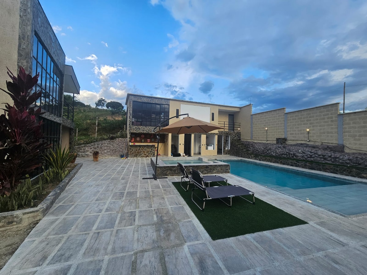 Pereira'ya 10 dakika uzaklıkta, doğa ve güzel manzaralarla çevrili bu güzel yerde konaklayın. Salento, Filandia, kahve parkı, panuca vb. gibi yerlere yakın. İnanılmaz olanaklar, kral yatak, jakuzi, katamaran ağı, barbekü, kamp ateşi, salıncaklar, küçük bir mutfak, masa oyunları ve çok daha fazlası.