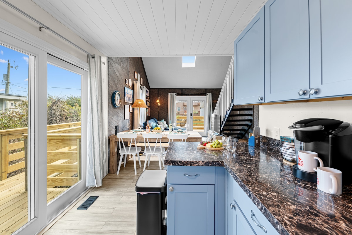 Gelin, mükemmel tuzlu, sörf, plaj yaşam tarzı bungalovunda kalın!⛱️ - Plaja 1 dakika yürüme mesafesindedir. - 5 kişilik. - Ücretli evcil hayvan dostu. - Yatak ve banyo çarşafları dâhildir. - Dowdy parkına 1 blok - 5 dönümlük rekreasyon, oyun alanı, amfitiyatro, çiftçi pazarı, turşu topu ve b - ball kortları - Sörf tahtası, şezlonglar, şemsiye - Tam donanımlı mutfak - Izgara ve piknik masası. - Ateş çukuru. - Tortugas, Lucky 12, Nags Head Balıkçı İskelesi, Waveriders Deli, French Door Butik, Dowdy's Park, YMCA, Skatepark'a 5 dakika yürüme mesafesinde.