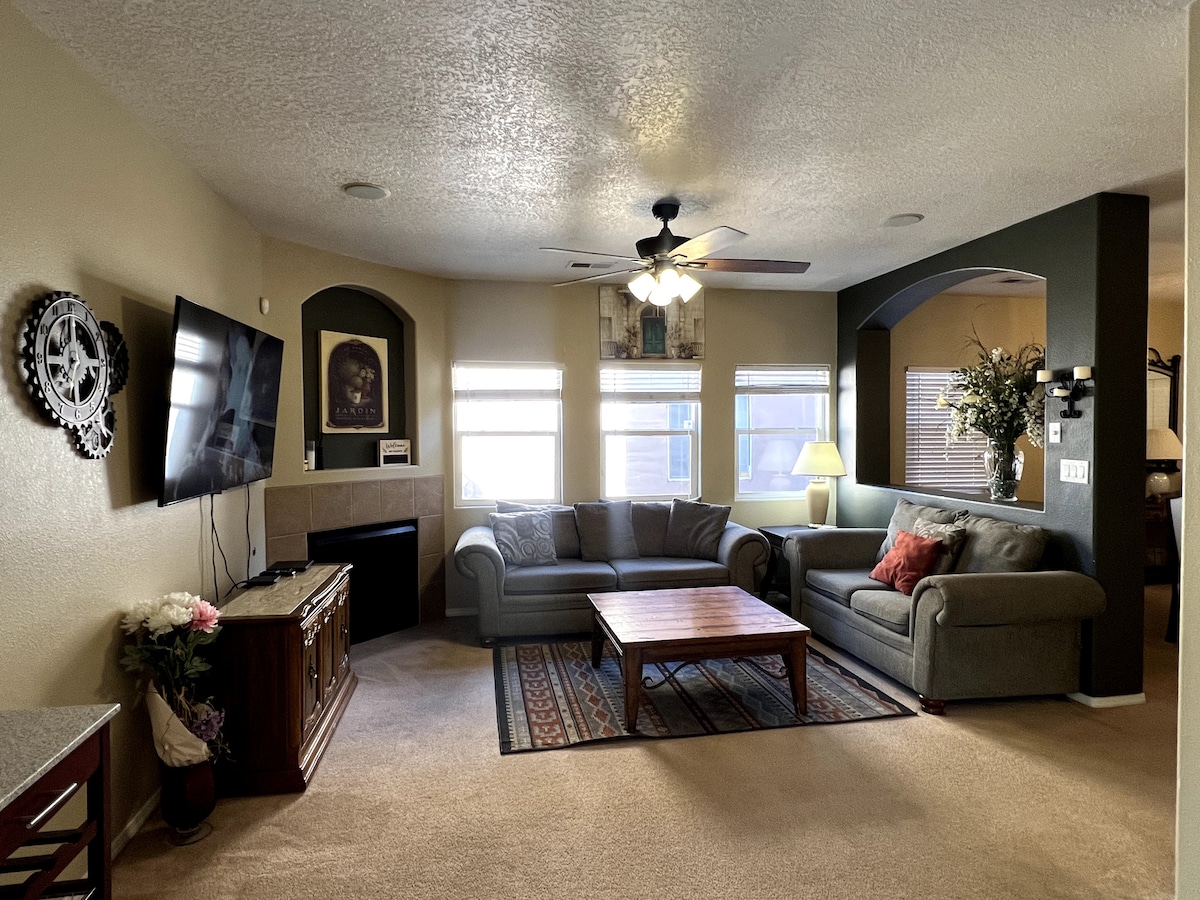 Üzgünüm, Albuquerque'in 45 mil yakınında YERLİ KİŞİ KABUL EDİLMEZ, W/D 7 gün veya daha uzun süre içindir. Bu rahat ev, kendi özel girişi, balkonu ve yaşam alanı ile güvenli, huzurlu, sessiz bir semtte merkezi bir konumdadır. Jetli küvette veya verandada uzaklaşmak ve dinlenmek için harika bir yer. Burada çalışıyorsanız, ziyaret ediyorsanız veya Albuquerque'den geçiyorsanız harika bir konum. I-40'a 2 dakika, Albuquerque'de herhangi bir yere ortalama sadece 15 dakika mesafededir. Alışveriş, restoranlar, tıp, golf sahası.
