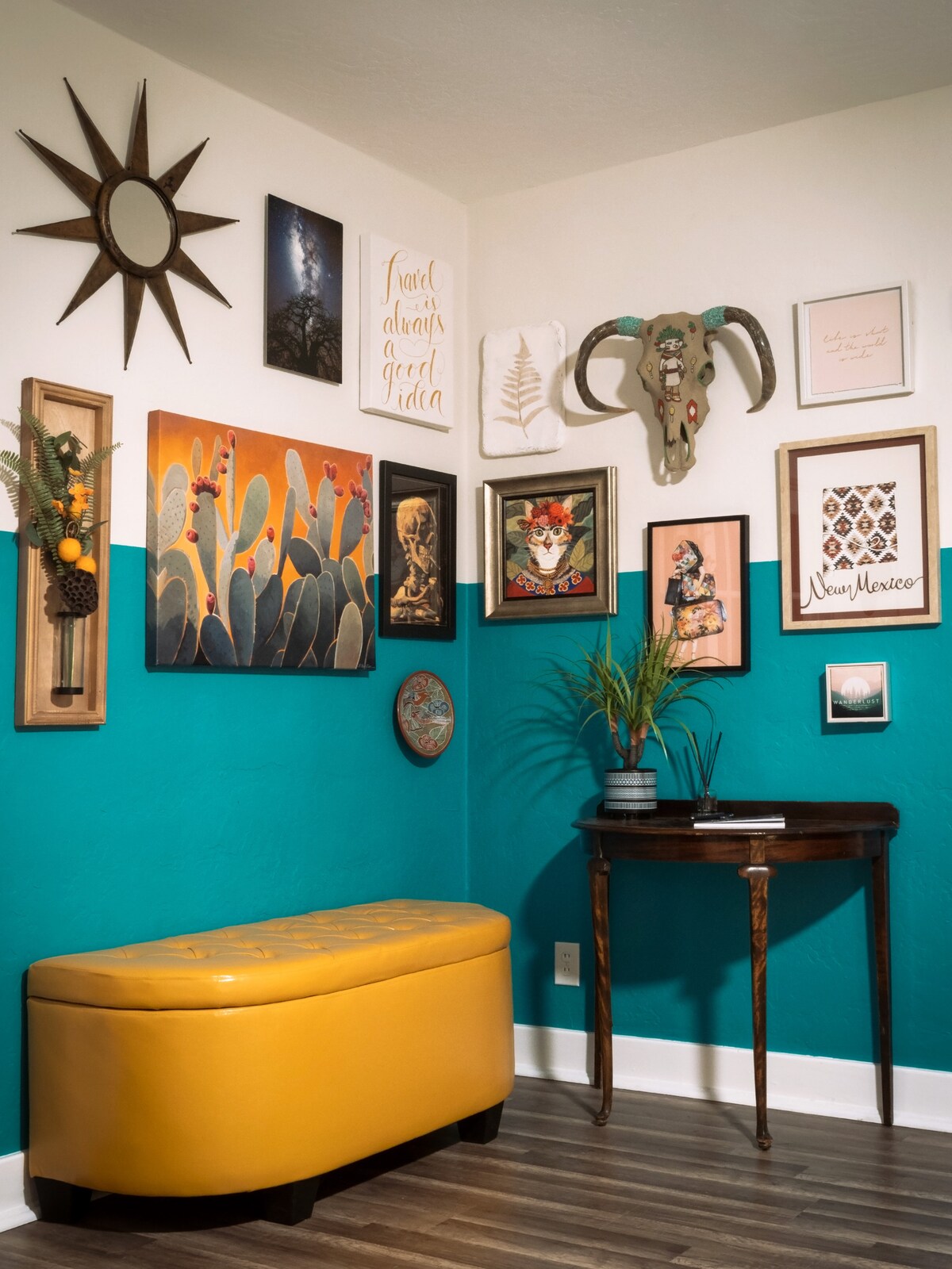 COVID-19 Bir ev sahibi olarak, misafirler arasında odayı temizleme konusunda çok katı standartlarım var. Bir sağlık çalışanı olarak sağlığınız ve güvenliğiniz en önemli konudur. Enchanted Sage, iş veya oyun için mükemmel bir vaha! Bu özel süit, ABQ'nun batı yakasında güvenli bir mahallede bulunmaktadır ve I40'a yakın ve kolay erişime sahiptir. Modern bir Yeni Meksika motifiyle dekore edilmiş, konforunuz ve rahatınız düşünülerek tasarlanmıştır. New Mexico'nun sunabileceği çok fazla harika şey var, keşfetmek için beklemeyin!