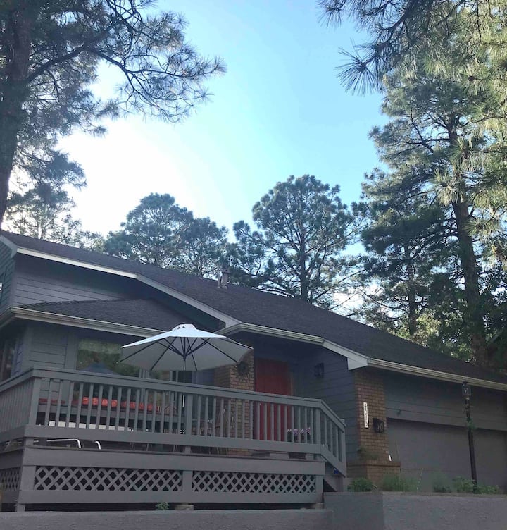 Cozy Flagstaff Forest Retreat – Gym & Sauna Relax among the pines in this peaceful downstairs duplex for up to 4 guests, just 5 minutes from downtown. Enjoy your private space with kitchen and bath, plus gym and infrared sauna access (by appointment). Walk to Buffalo Park and explore nearby Snowbowl or the Grand Canyon. Perfect to rest, recharge, and connect with nature.