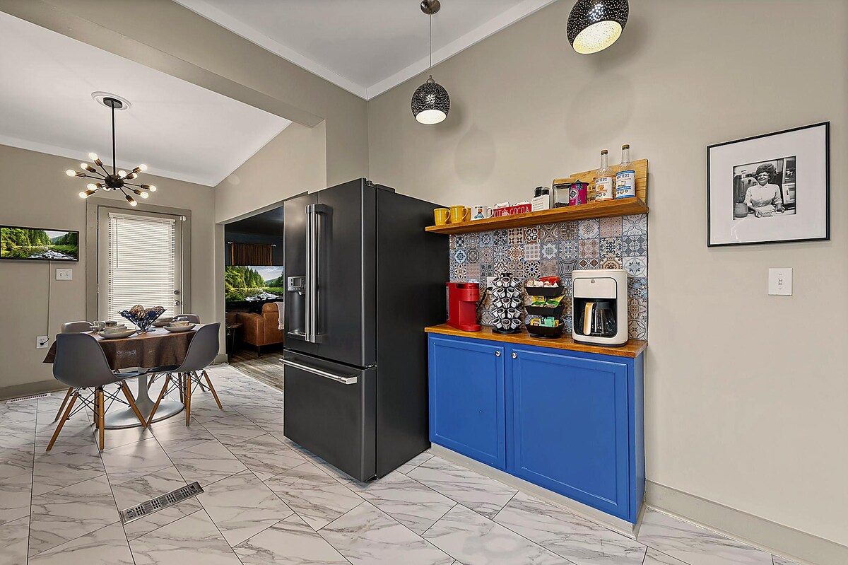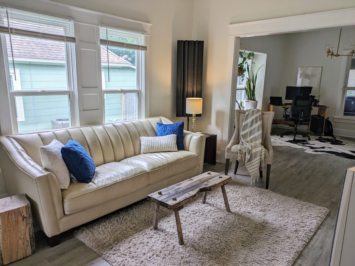 Her ayrıntıyı düşündük. Evdesiniz! İzin: NSD-STR-00261 Muhteşem bir ayaklı küvette dinlenin! Yatak odası 1 - queen boy yatak. Yatak odası 2 - Misafirlerin "şimdiye kadar uyudukları en iyi gece uykusu" olarak tanımladığı tam boy yatak. Oturma odasında 2 kanepe. Çocuklara uygundur. Evcil hayvan dostu Netflix, Hulu ve daha fazlası ile 54" Roku TV. Kahve içmek veya yoga yapmak için bir arka veranda ve sigara içenler için ön veranda. Tam stoklu. Mutfak baharatları ve kiler malzemelerinden, kahve/çay istasyonuna, hatta çamaşır makinesi ve kurutucuya kadar.