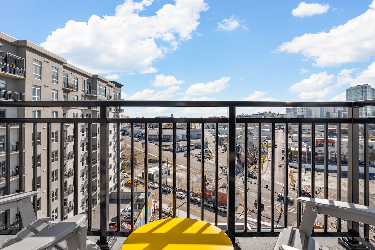 Şehir merkezinin göbeğindeki köşe dairemizde hepinizi ağırlıyoruz. Yerden tavana pencerelerin, özel bir sarmal balkonun ve geniş bir alana sahip açık bir yerleşim düzeninin keyfini çıkarın. Konforunuz önceliğimizdir. Kendinizi evinizde hissetmeniz için gereken tüm olanakları sunuyoruz. Giriş: 15.00 Çıkış: 10.00 - İSTİSNA YOK Park etme ve alanla ilgili SSS'ler için lütfen aşağıdaki kaydın tamamını okuyun. ★"Nashville'deki açık ara en iyi konaklama!" ★"Bir noktada 'Sanırım bu şimdiye kadar yaşadığım en iyi Airbnb deneyimi olabilir' dedim."