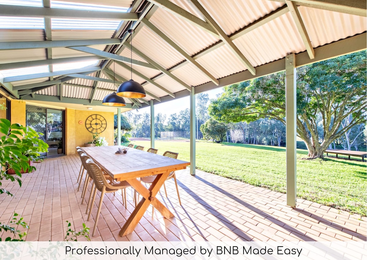 Yeşil South Dubbo'daki huzurlu 35'te ailece dinlenebilirsiniz. Tamworth Street'teki mağazalara yakın; IGA, eczane ve çok daha fazlası. Konaklamanızın keyfini çıkarırken The Harvest Cafe ve South Dubbo Tavern'daki yerel restoranları keşfedin. Ya da 35'te havuz kenarında rahatlayın ve dinlenin. Özellikler: ters çevrimli kanallı klima, havuz, sundurma, örtülü açık alan, çamaşır makinesi ve kurutucu, iki (2) queen yatak, iki (2) king tek kişilik yatak ve orta boy evcil hayvan dostu. İstek üzerine büyükanne dairesi mevcuttur.