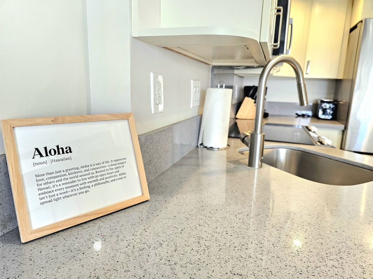 Ilikai'deki bu güzel tek yatak odalı ünite, balkondan LED ışıklarla kaplı el yapımı tavanlara kadar muhteşem manzaralı küçük bir vahadır. Bir plaj kulübesinde yaşama atmosferine sahip olacaksınız, ancak tam donanımlı bir mutfak, banyo, queen boy yatak, tek kişilik yatak ve bir yataklı kanepe konforunda. Bazı ışık anahtarlarının yanında bir dimmer çubuğu olduğunu lütfen unutmayın, lütfen ışıkların çalışmadığını onaylamadan önce dimmeri tamamen yukarı kaldırın.