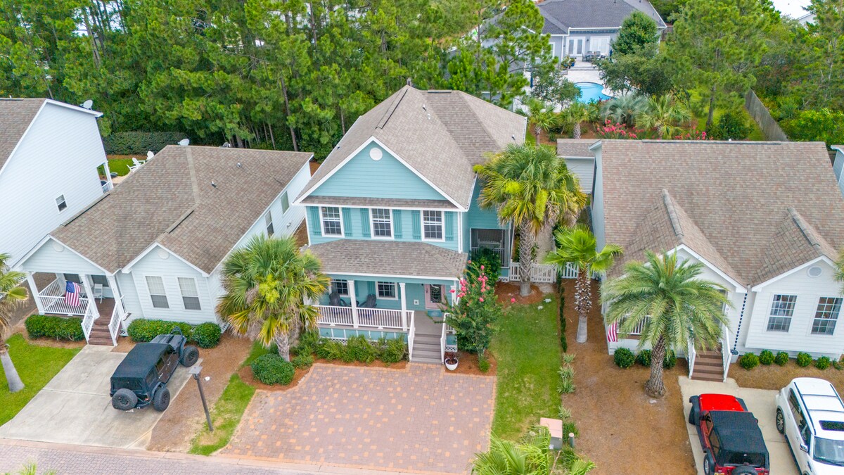 30A'da cennete gelin! Öne çıkan özellikler: PLAJ (1/2 MİL UZAKLIKTA) 5 yatak, 4,5 banyo, 14 kişilik. Beyaz kumlu plajlara 0,5 mil. 4 kişilik golf arabası sürücüleri 25 yaşında olmalıdır. 4 yetişkin bisikleti Ortak havuz birkaç adım ötede! 2 veranda/sundurma 5 King boy yatak! 3. katta ranza odası Ebeveyn banyolu 2 ana yatak odası Tam boy çamaşır/kurutma makinesi bulunan çamaşır odası Her odada Roku TV (parolalarını kendiniz getirin). Kablosuz internet bağlantısı. Özel ofis alanı! Yakınlarda harika alışveriş ve restoranlar. Konum!