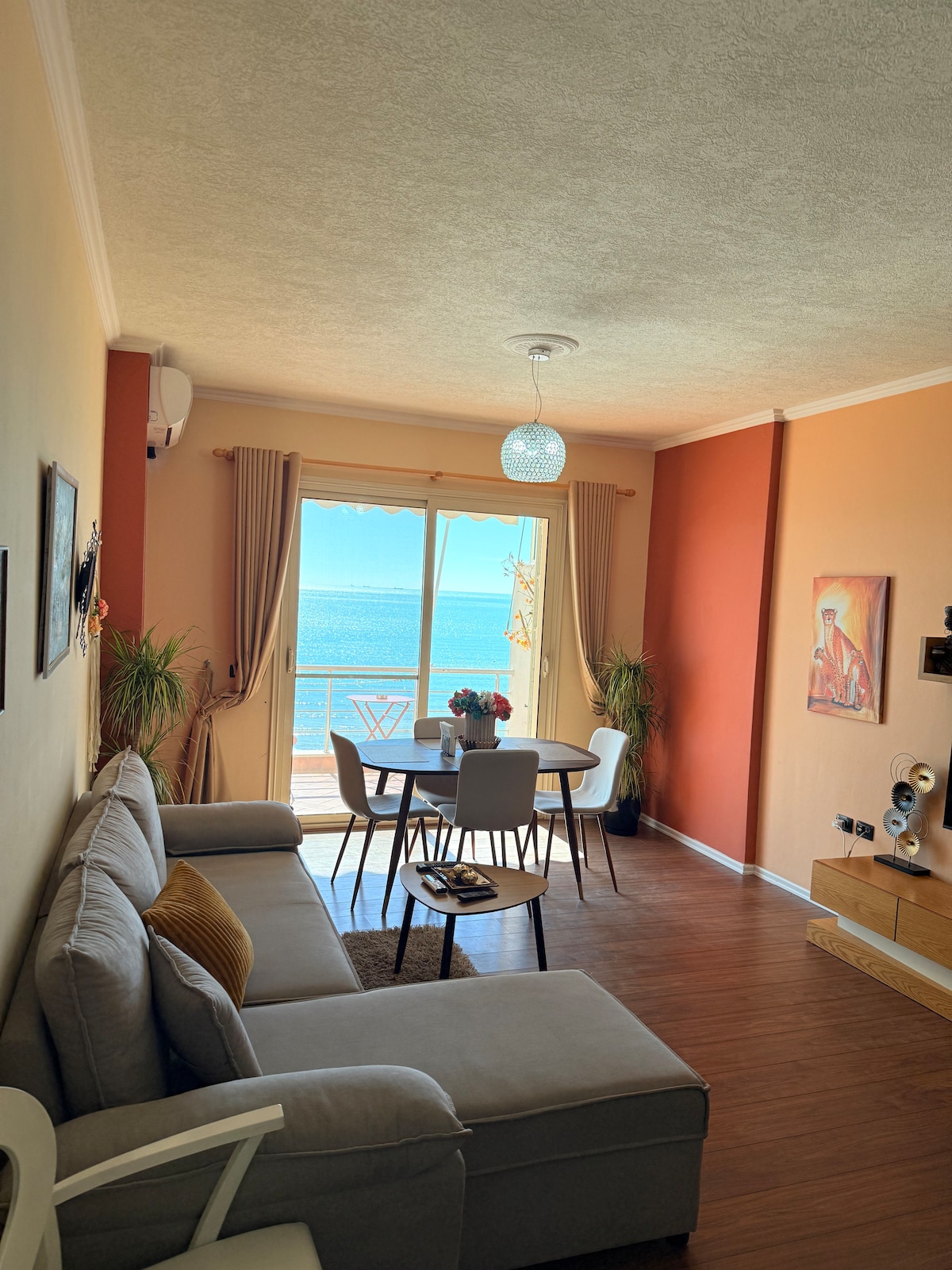 🌞 Step into your sun-kissed escape — a stylish 🌊 sea-view apartment just steps from the sand, where the sound of waves greets you each morning and 🌇 golden sunsets pour into your balcony each night. 💫 Whether you're dreaming of a peaceful getaway, a 💑 romantic retreat, or a 💻 remote work haven, this beachfront stay offers everything you need to relax, recharge, and feel at home in Durrës.