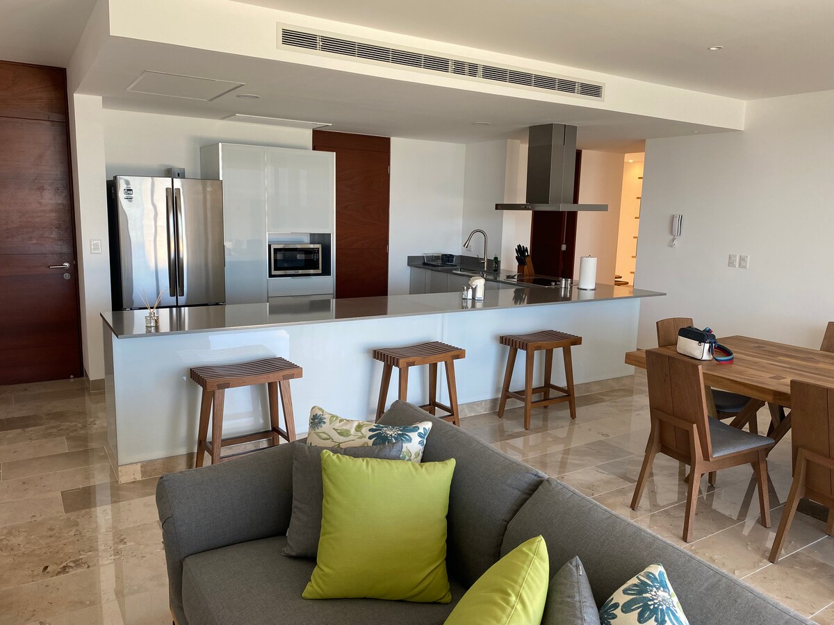 8 kişilik yemek odasından doğrudan okyanus manzaralı özel lüks sahil dairesi. En kaliteli kaplamalarla tamamen döşenmiştir, geniş ve konforlu yaşam alanları sunar. Yukatan sahilindeki en yeni konut kompleksi olan Turena'da, Kinuh konut kompleksi (Telchac Puerto) içinde yer almaktadır.