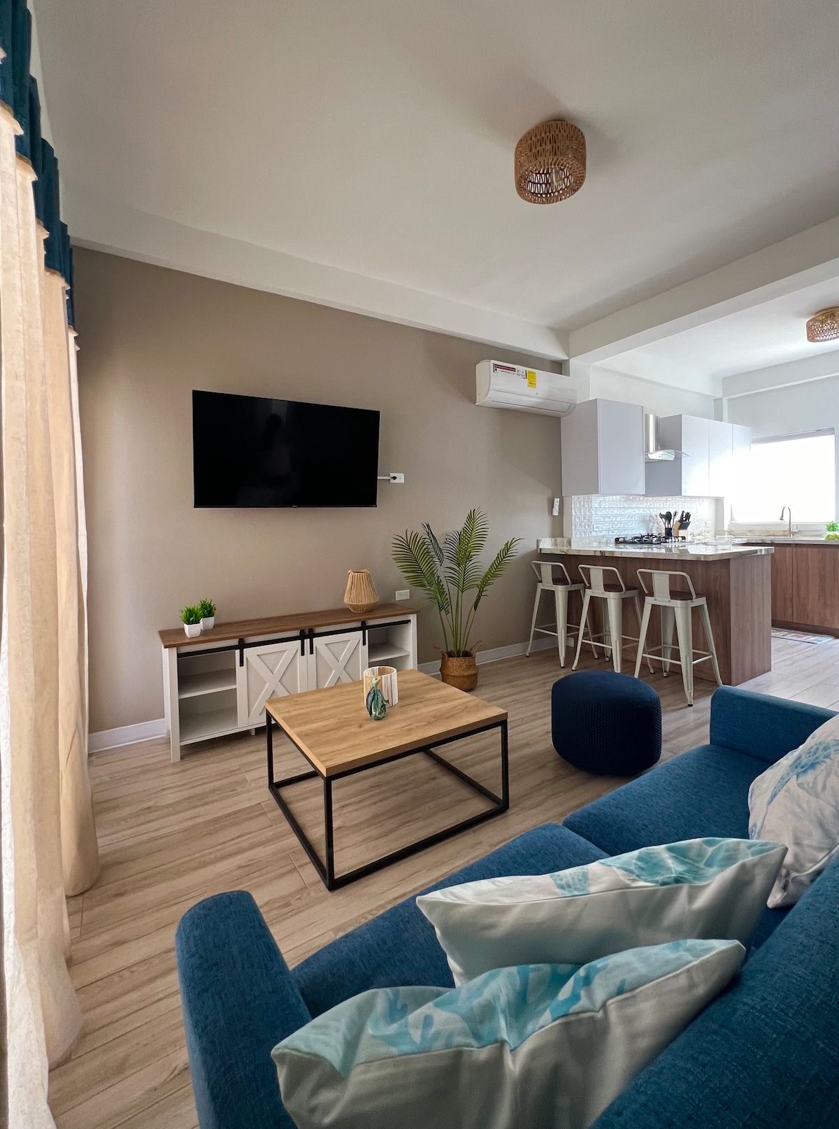 Yüksek tavanlı ve özel girişli ferah dairemizde konforun tadını çıkarın. Plaj sandalyeleri, palmiye ağaçları ve rahat bir verandası olan yemyeşil bahçede dinlenin. İçeride hem oturma odası hem de yatak odası klimalıdır. Temiz havlu ve duş jeli de dahil olmak üzere tüm temel malzemelerle donatılmış konaklamanız sorunsuz olacaktır. Eagle Beach'e sadece 15 dakika yürüme mesafesinde ve yerel mağazalara 7 dakika mesafededir. Her türlü sorunuzda yardıma hazırız.