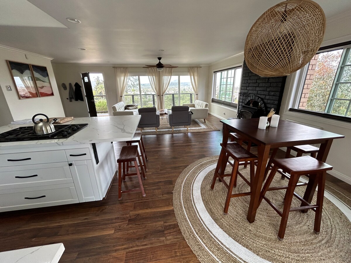 3 yatak odalı 1 banyolu çatı katı (2 ayrı taraf) açık konsept misafir evi. Çok huzurlu Doğu San Diego kaçamağı. Gün boyunca güzel okyanus ve dağ manzarasının tadını çıkarın, ardından nefes kesen gün batımları ve geceleri şehir ışıklarıyla jakuzide dinlenin. San Diego'nun en iyi manzaraları! SD havaalanına ve plajlara sadece 25 dakika mesafede. 2 yerel şaraphaneden ve kumarhaneden birkaç dakika uzaklıktadır. Evde 6 kişi kalabilir, ancak ücret karşılığında misafirleri gün boyunca davet edebilirsiniz. Etkinlik fiyatları etkinlik başına görüşülecektir. Ana evde yaşıyoruz.