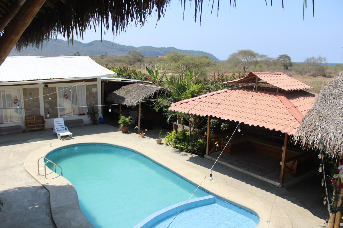 Vistamar, rustik cazibeyi modern konforla harmanlıyor: sakin okyanus manzaraları, klima, mobilyalı balkonlar ve bahçe alanları, sıcak su bulunan özel banyolar, günlük temizlik, Starlink WiFi (yedek güç ile), tüm odalarda ve ortak alanlarda masalar, iyi donanımlı bir mutfak ve özenli personel. Vistamar, tesis içi bir düzineden fazla tur operasyonunun yanı sıra muhteşem manzaralı günlük yoga sunuyor. Ayampe kasabasında, rezervin hemen önünde ve plaja ve mağazalara sadece 2 dakika yürüme mesafesinde.