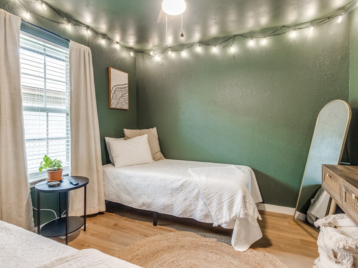 Zevkli bir şekilde dekore edilmiş bu dubleks, Edmond'un göbeğinde, alışveriş, market ve restoranlara yürüme mesafesinde bulunmaktadır. Harika yerel alışveriş, lezzetli restoranlar ve Oklahoma City şehir merkezine hızlı şehirlerarası erişim için uygun bir konumdadır. 4 kişiyi rahatça barındırır. Yüksek hızlı kablosuz internet bağlantısı, akıllı TV'ler, rahat yataklar ve iyi stoklanmış bir mutfak ile kendinizi evinizde gibi hissedeceksiniz! İki kat fazla alana mı ihtiyacınız var? Bu dubleksin her iki tarafını da rezerve edin! Yardıma ihtiyacınız olursa ev sahibine danışın.