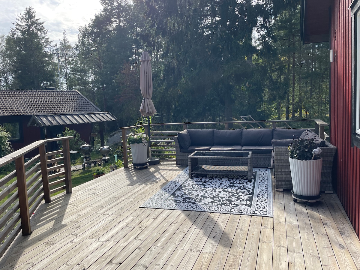 Stockholm'den sadece 1 saat uzaklıktaki su kenarında dinlenmek için huzurlu bir vaha! Deniz arsası, özel iskelesi ve jakuzisi olan rahat evimize sıcak bir karşılama. Burada huzurun tadını çıkarabilir, özel iskeleden yüzebilir veya terasta dinlenebilirsiniz. Ev, çiftler, aileler ve doğa severler için mükemmel olan lüks malzeme seçenekleriyle moderndir. Ev, muhteşem su manzaraları sunan büyük pencerelere sahip açık bir kat planına sahiptir. Rahatlamak ve sevdiklerinizle kaliteli zaman geçirmek isteyenler için mükemmeldir.