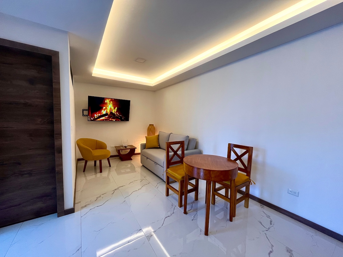 Yeni ve avangard bir binanın 20. katındaki harika lüks süitimize hoş geldiniz! Bu yüksek oaz, size birinci sınıf konfor sunmak için tasarlanmıştır (bazıları ücretsiz kullanım ve diğerleri rezervasyonla). Izgara severler için Quito'nun 360 derece manzarasına sahip bir barbekü alanımız var ve evcil hayvanlarıyla seyahat edenler evcil hayvan dostu olduğumuzu bilmekten mutluluk duyacaklar. Ayrıca ek bir ücret karşılığında çeşitli ürün ve içeceklerin bulunduğu bir atıştırmalık barımız da bulunmaktadır.