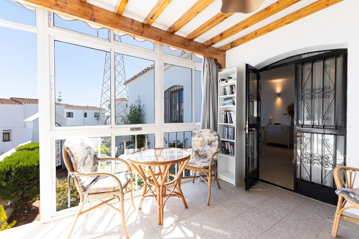 Nerja'da manzaralı bir ortamda geniş balkondan deniz manzaralı güzel Endülüs kır evi! Zemin katta teraslı güneşli özel bahçe, keyif almak için güzel bir açık alan. Burriana Plajı'na ve restoranlara sadece 6 dakika yürüme mesafesindedir. Konaklama haziran ayında tamamen yenilenmiştir. Eve ulaşmak için merdiven çıkmanız gerektiğini ve evin oturma odasından alt kattaki yatak odasına erişmek için spiral bir merdivene sahip olduğunu lütfen unutmayın. Sokakta ücretsiz park edilebilir.