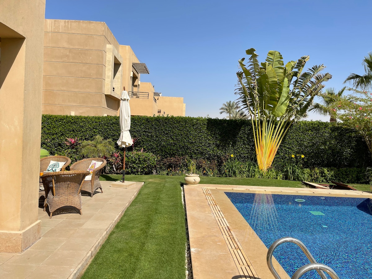 An amazing ground three bedrooms ensuite chalet with a nanny's room and bathroom located in the best community compound in Ain sokhna . All rooms are airconditioned/heated .The chalet has an open concept kitchen with built in appliances , cozy living area .Big cable Tv and WIFI access. Daily housekeeping ,24/7 maintenance ,toiletry and amenities supply , Out door barbeque area We make sure you enjoy a luxurious hassle free vacation .