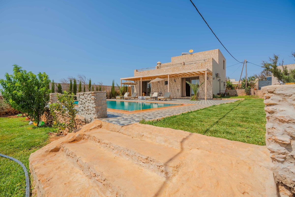 Bienvenue dans notre villa beldi cosy,seulement à quelques minutes d’Essaouira Profitez d’un cadre calme à la campagne entouré de verdure, idéal pour se ressourcer en couple ou en famille. La villa dispose de 2 chambres spacieuses, d’un salon lumineux, d’une cuisine équipée et d’une piscine privée. Chaque espace a été pensé pour offrir bien-être et intimité. Je serai ravi de vous accueillir personnellement et de vous aider à découvrirVotre confort et votre satisfaction sont ma priorité