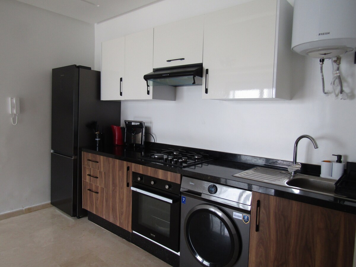 Parc de Mohammedia'daki şık dairemize hoş geldiniz, tatil veya iş için mükemmeldir. Plaja ve olanaklara yakın konfor ve huzurun tadını çıkarın. Balkonlu geniş yatak odaları, langırtlı aydınlık bir oturma odası, tam donanımlı bir mutfak ve iki modern banyo. Ücretsiz kablosuz internet bağlantısı, klima, güvenli otopark ve çamaşır makinesi dahildir. Yakındaki aktiviteler: yürüyüş, su sporları, kültürel ziyaretler ve yemek. Mohammedia'da unutulmaz bir konaklama için şimdi rezervasyon yapın.
