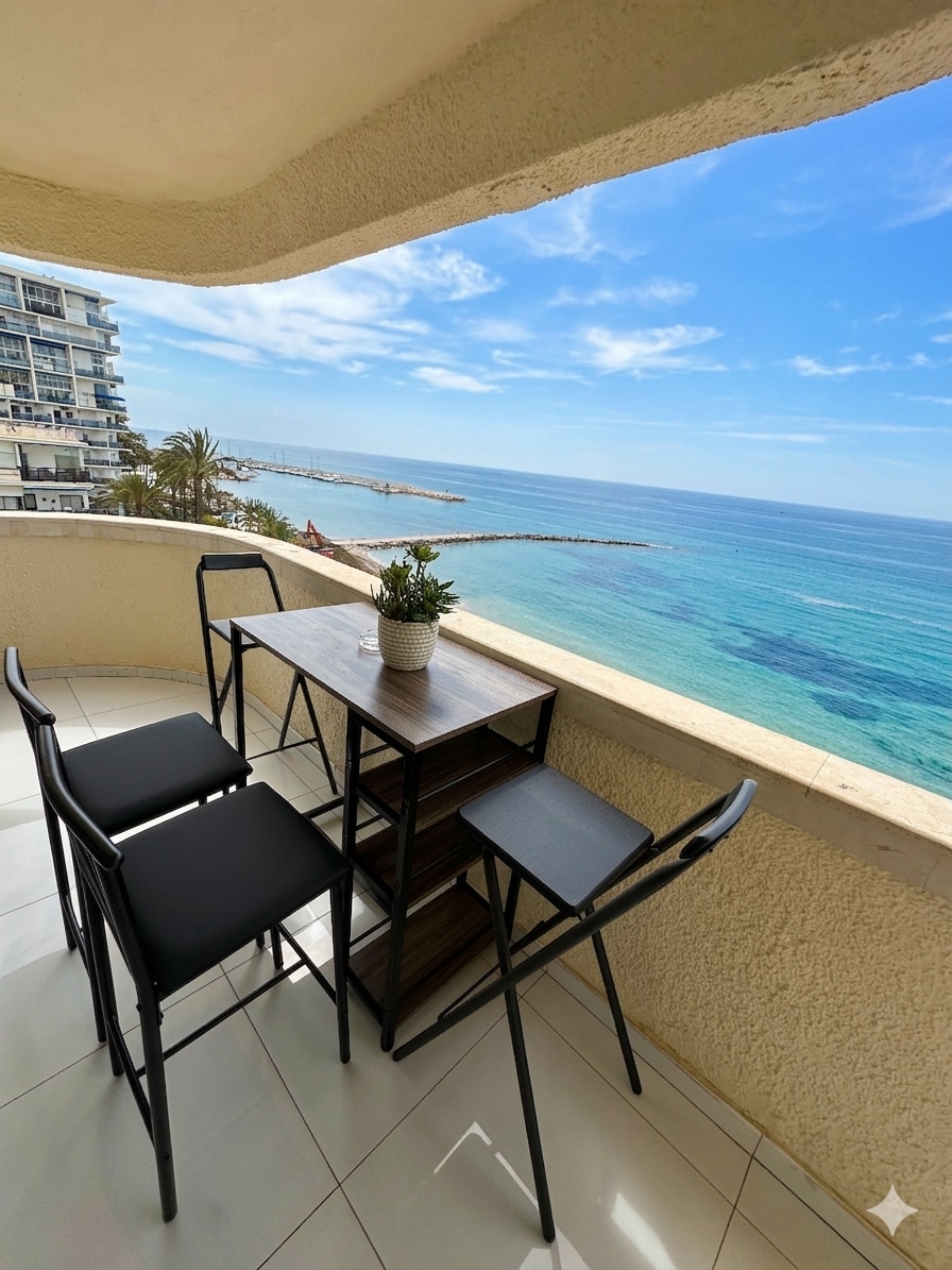 Güneşli çatı terası ve okyanus manzarası. 2025'te yenilendi