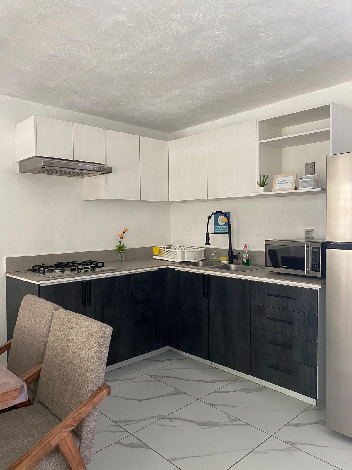 Disfruta de tu estancia en este departamento totalmente equipado ubicado en el piso 8, situado en un conjunto habitacional muy relajante y moderno, cuenta con seguridad 24/7, estacionamiento exclusivo, salón de usos múltiples, gimnasio, coworking, cancha de pádel, golfito, un amplio jardín en el que disfrutarás de un pequeño estanque; además, dentro del edificio encontrarás servicio de lavandería y cafetería con costo extra. Si te hospedas por más de una semana manda mensaje para un descuento.