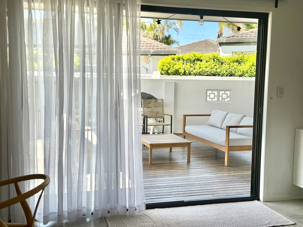 Luxe two bedroom, two bathroom townhouse a short 50 meter walk from the stunning Gold Coast beach of Northcliffe. Walking distance from the vibrant shopping and restaurants of both Surfers Paradise and Broadbeach, but away from the noisy hustle and bustle. Private access to the Beach House’s courtyard is straight off the street - there is no lift needed to navigate whilst juggling your suitcases and surfboards. Ask me about bringing your furbaby - prior approval required.