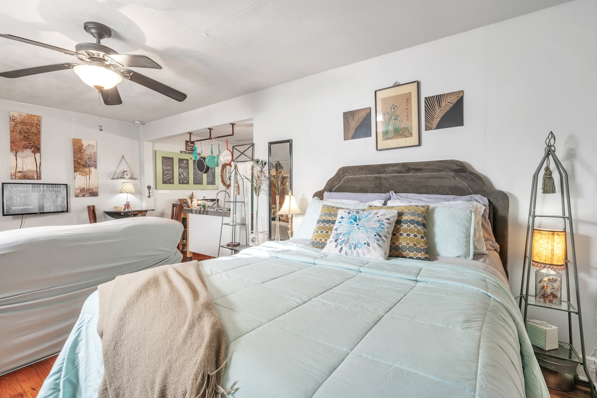 Bal arısına hoş geldiniz! Modern kaplamalı 3/2 ev! Parka yürüme mesafesindedir. Rahat yataklar ve çarşaflar! Pelüş havlu ve bornozlar. Tam donanımlı mutfak! Hevesli kahve severler için gereken her şey (kahve makinesi, french press, V-60, öğütücü ve el köpürtücü). Dışarıda 2 kişilik hamakta ağaçların altında dinlenin! Özel arka bahçenin keyfini çıkarmak için ızgara, Chiminea ve veranda mobilyaları! Çalışma alanları için 2 masa. Çamaşır makinesi ve kurutucu. Şehir merkezindeki çiftçi pazarına ve ücretsiz etkinliklere 1 mil, motorplex'e 10 dakika.