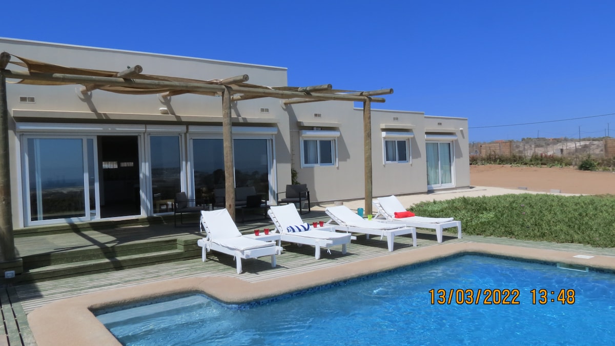 Elqui vadisinin huzurunun ve güneşinin tadını çıkarmak için ailece dinlenmek için ideal, modern mimarisi, havuzu, sobası, terasları ve barbekü alanıyla konforlu ve ferah bir yer