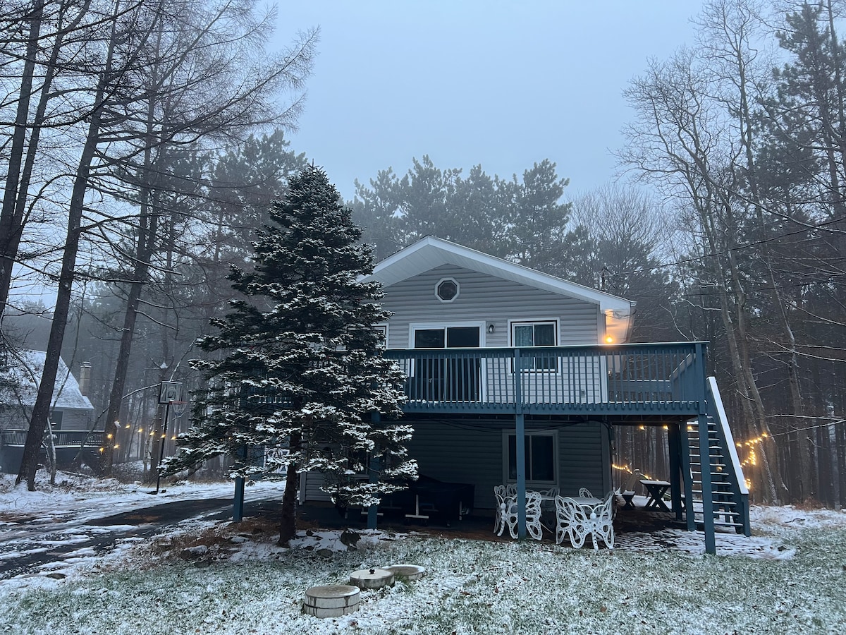 Welcome to Skylight Chalet: Your private escape in the heart of the Pocono Mountains. Situated on nearly an acre of lush forest & boulders our retreat offers a perfect balance of comfort, coziness, and relaxation. Unwind in the hot tub beneath the stars, rejuvenate in the sauna, or gather around the fire pit for cozy evenings with friends & family. Whether you seek adventure or peaceful relaxation, our cabin provides a serene sanctuary for your getaway. Book your stay today!